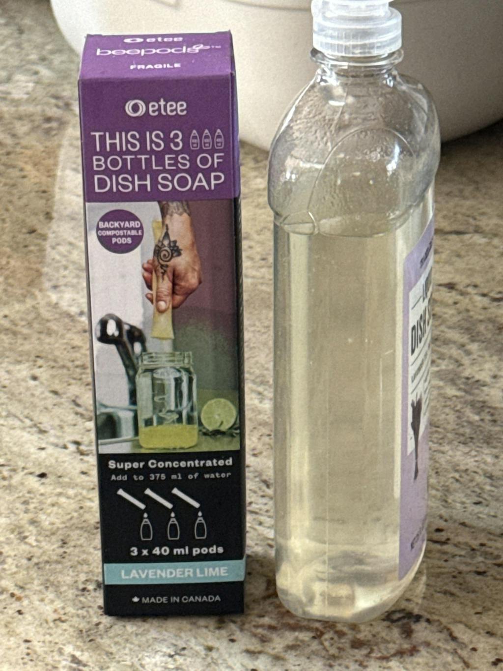 Loved for its ability to effectively cut grease and clean, our Lavender Lime Super Concentrated Liquid Dish Soap suds up just as well as the leading brands, but WITHOUT plastic and the wasted emissions of shipping water. Packaged in our very own (internally developed and manufactured here in Toronto) backyard compostable pods and formulated without artificial foaming agents like SLS, our dish soap is best in class for washing your dishes and cleaning our planet.